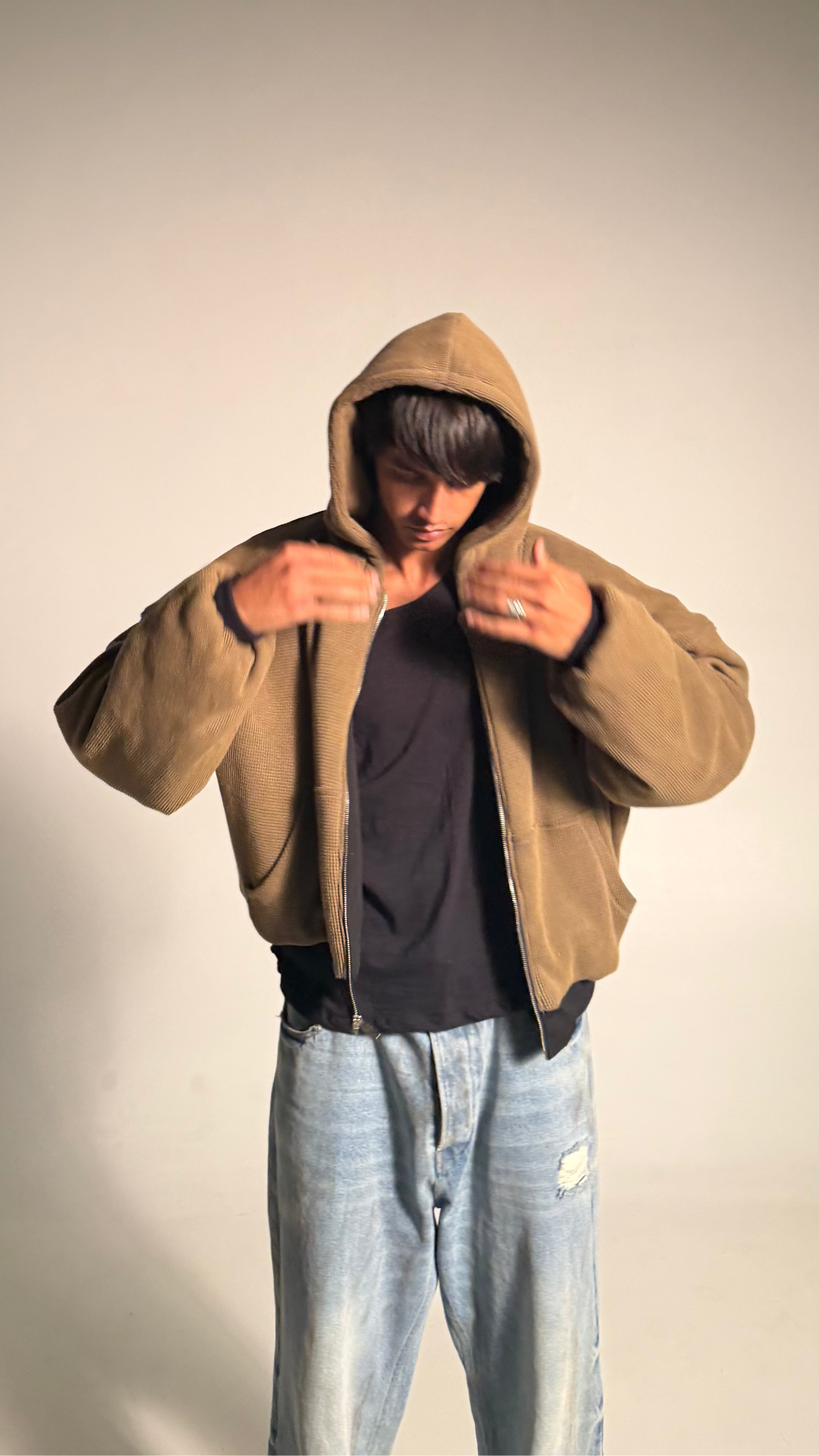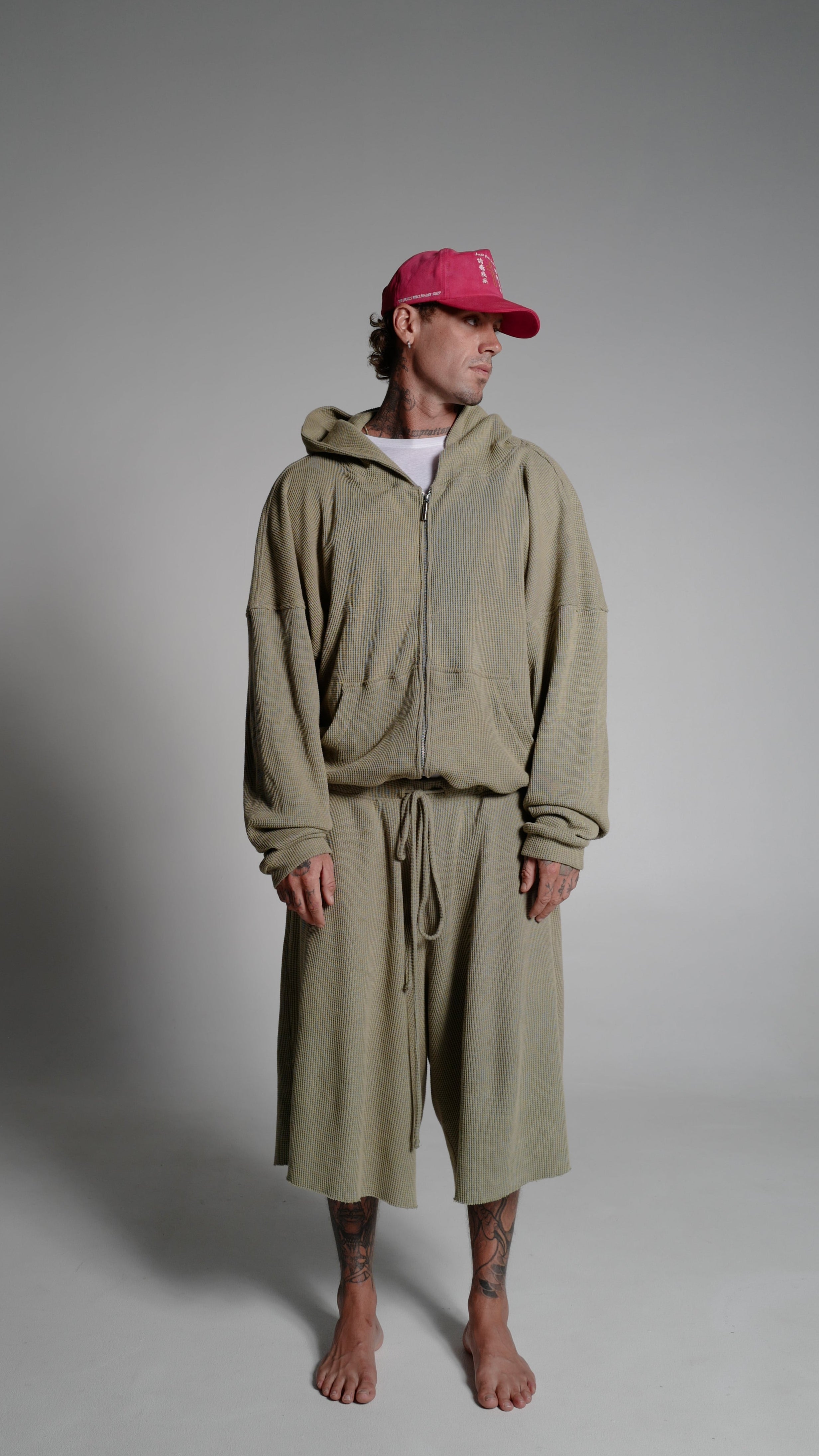 SAGE SMOKE - WAFFLE ZIP HOODIE